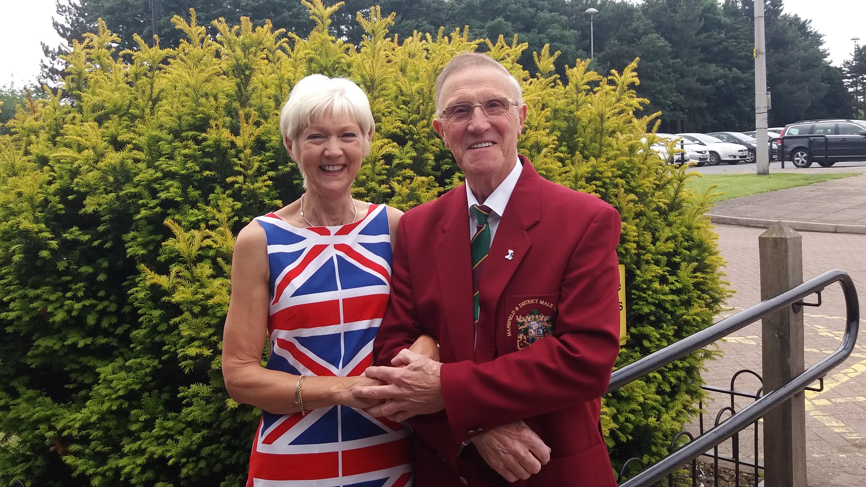 Baritone Keith Turner and Rotarian Karen Hewkin link arms