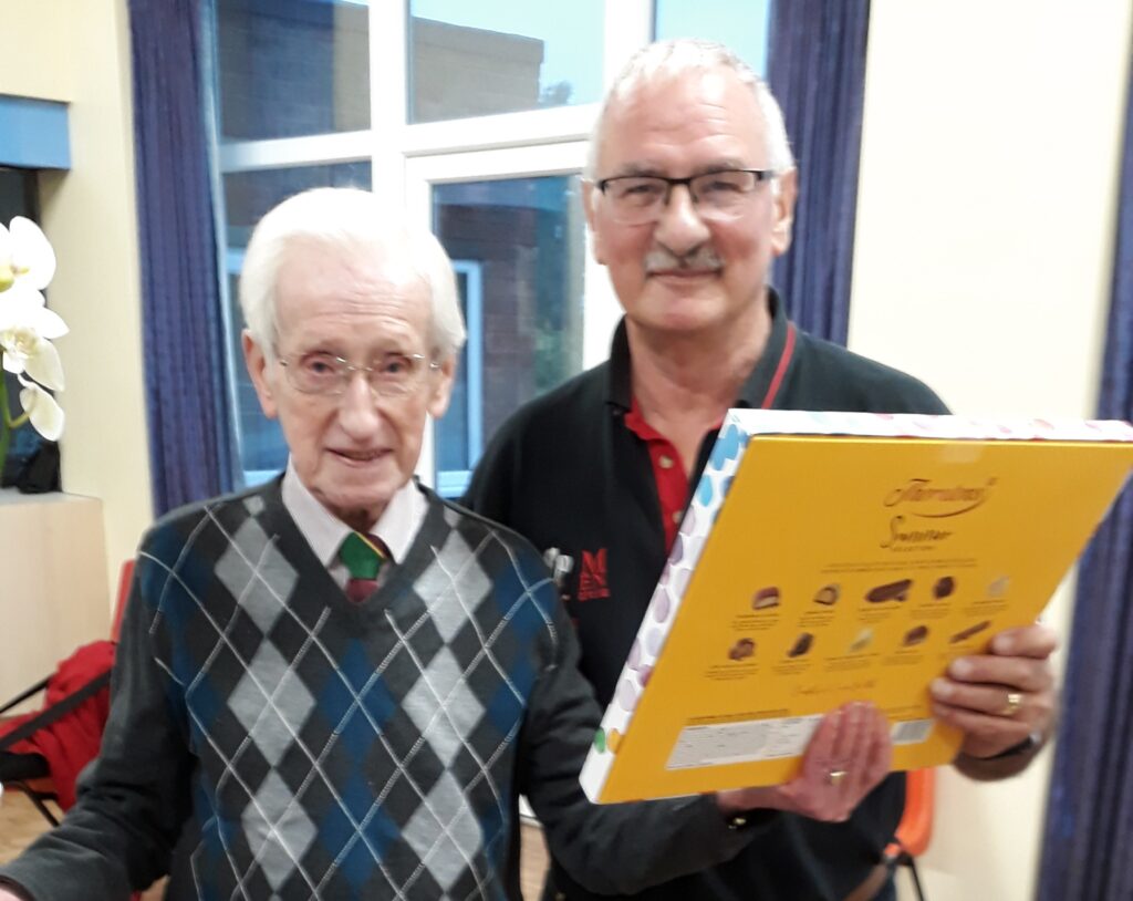 Our most senior chorister, Tom Dillon has decided to retire after 42 years’ service. 95 year old Tom is pictured receiving tokens of love and appreciation from Chairman John Wakeland at last Tuesday’s choir practice.
