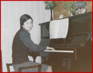 I was born in Sutton in Ashfield and grew up in Mansfield Woodhouse with my parents and older brother. I was lucky that there was a piano in the house which had belonged to my dad’s mum. Grandma, who died before I was born, was a pianist and violinist. I started piano lessons when I was 4 years old and later played duets with my brother who also had lessons. My mum loved singing and possessed a good voice which I sadly did not inherit. My dad had had some piano lessons from his mum as a boy but gave it up as his brothers were outside playing and teasing him through the window! He could play the piano by ear though.