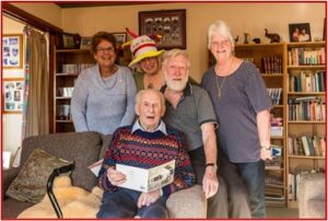 A more recent photograph from the Launceston Examiner newspaper portrays Ron and his family at the celebration of his 107th birthday, the oldest person in Tasmania and the 6th oldest man in Australia, of which Ron was quite rightly immensely proud. His recipe for a long life was “having a sharp wit, clean living and a love of song!