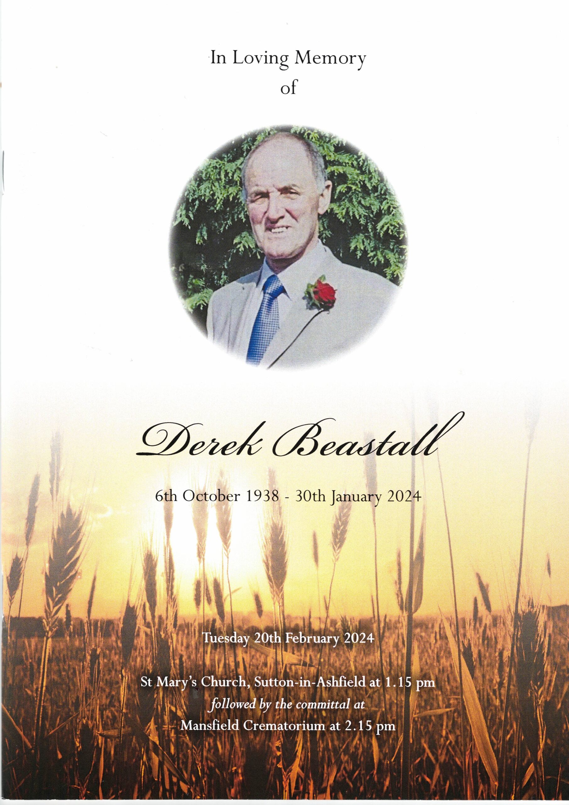 Yesterday, 20th February 2024, we attended the funeral of our fellow chorister Mr. Derek Beastall.