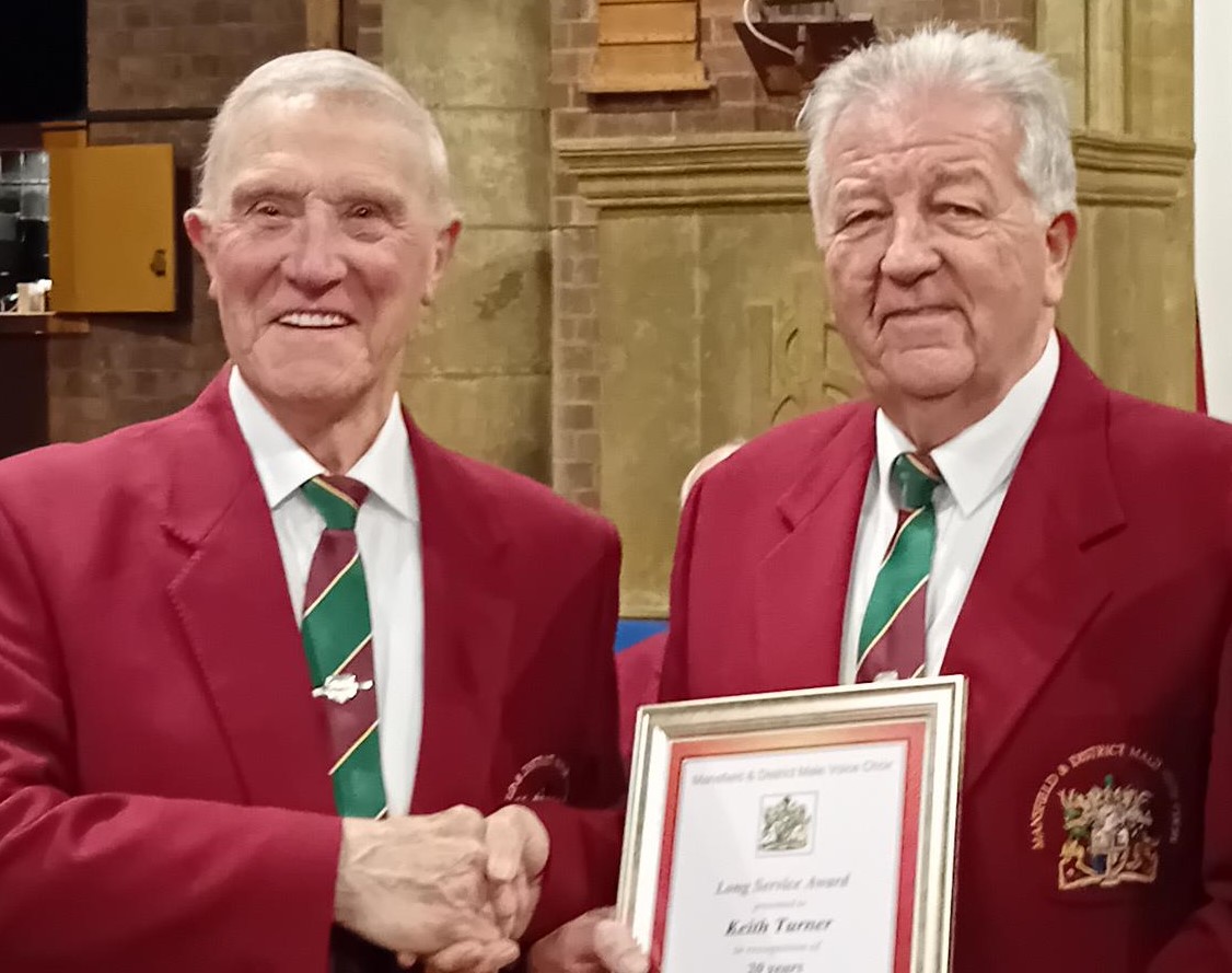 To his great surprise, during the evening, Keith Turner was presented with a certificate in celebration of 20 years’ membership and involvement in the choir. Keith is a staunch baritone and can always be relied upon for a kind word, friendliness and commitment to performance. We greatly value his involvement together with his wife Mary who is always active in our choir Supporters’ Group.