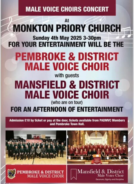 “What a full day, absolutely brilliant! Massive thank you Mansfield and District Choir, for blessing us with your voices, thanks also goes out to Pembroke Town hall staff, the Mayor Cllr Gareth Jones, Reverend Heidi Monkton Priory Church, Tory and your team for the beautiful spread you put on both at Lunch and after the concert, last but not least Tony and staff Pembroke Power Station club where we rounded off a beautiful memorable day.