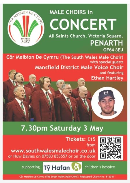 Our first concert was in All Saints Church in Penarth which was initially built between 1889 and 1891, later rebuilt in 1926 after a fire, then again in 1954 after suffering damage during the Blitz. It was a wonderful setting for not only our two male voice choirs but a superb young soloist Ethan Hartley and brother and sister violinists Megan and Rhys Cook. Directed by Elaine Robbins and the very accomplished accompanist Sian Davies, Cor Meibion de Cymru, true to their roots and name, beautifully performed five Welsh standards, in Welsh, and it was a pleasure to hear the contrasts in dynamics and tempo. Ethan Hartley was simply brilliant, his diction, timing and sense of occasion had everyone mesmerized whilst our Mansfield choir presented an audience pleasing mix of male voice classics, popular modern songs and a great performance of the Chitty Chitty Bang Bang Medley. This brought light and fun to the whole concert which was followed by a buffet and an afterglow sing in the local Conservative Club.