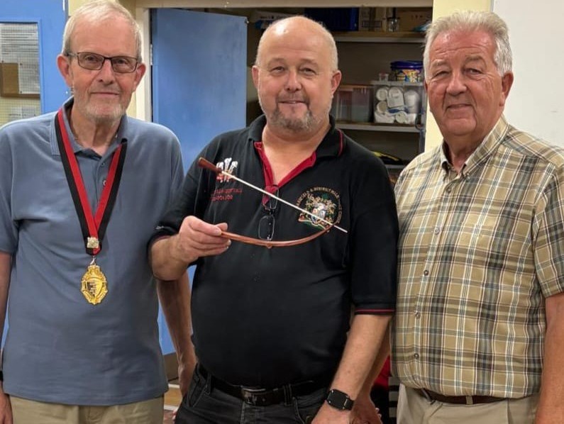 In the photographs below Ian is presented with a certificate (frame to follow) and a trophy conductor’s baton by David Marriott, President (left) and Geoff Hursthouse (Chairman), right. The dress is informal as it was a relaxed social evening attended by choir members, the choir Supporters’ Group and families and friends. A more formal presentation of engraved glassware was presented to Ian at our 80th Anniversary concert in Southwell Minster on 5th October 2024. Here we were joined by Bestwood, Eastwood Collieries and St. Edmundsbury male voice choirs and the Ravenshead Swing Band and an audience of over 450. That is testament to our performance capability, social networks and a love of choral music which Ian consistently perpetuates. Thanks Ian and sincere congratulations.